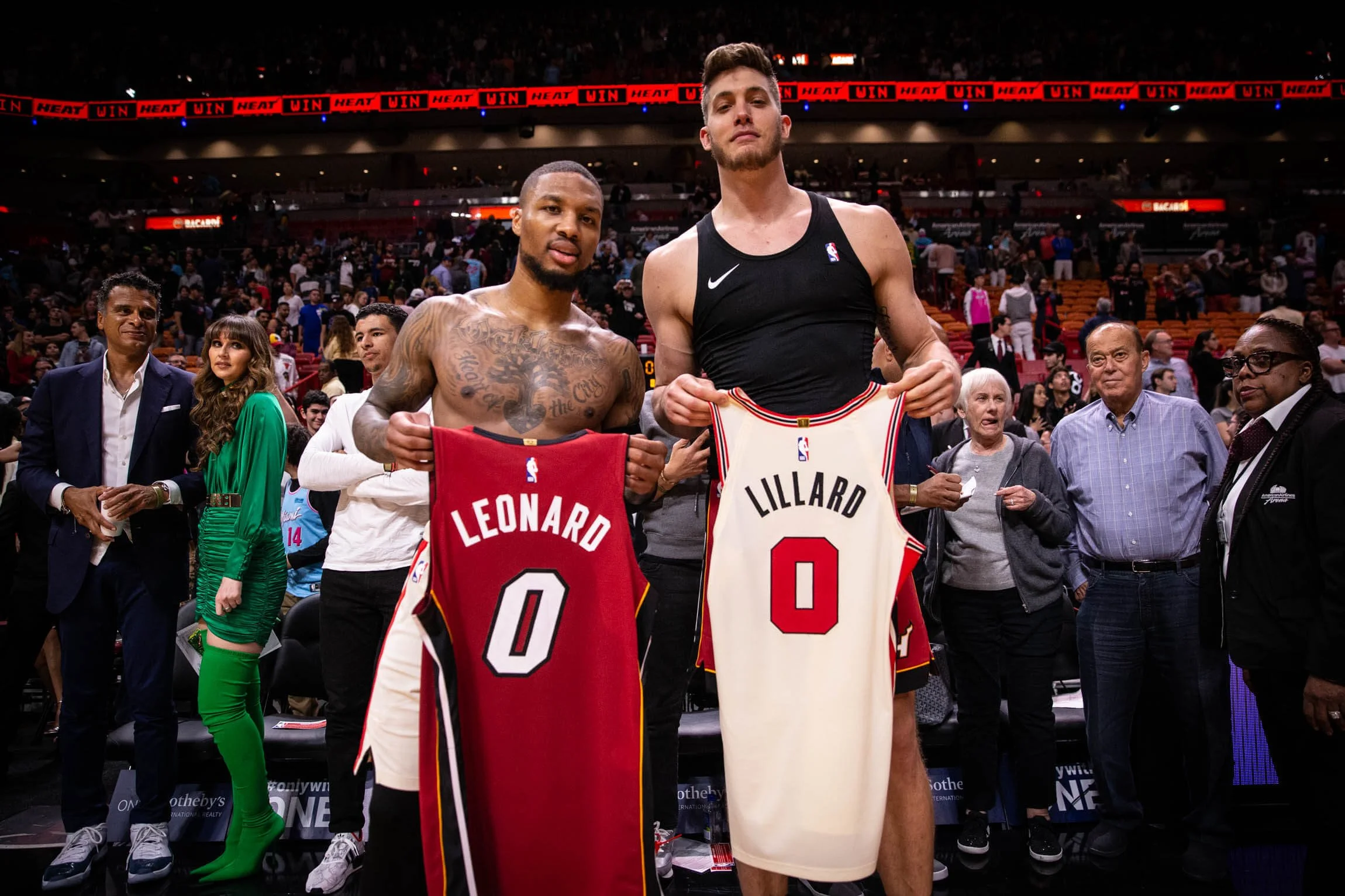 When Leonard was with the Heat, he traded jerseys with an old teammate (courtesy Meyers Leonard)