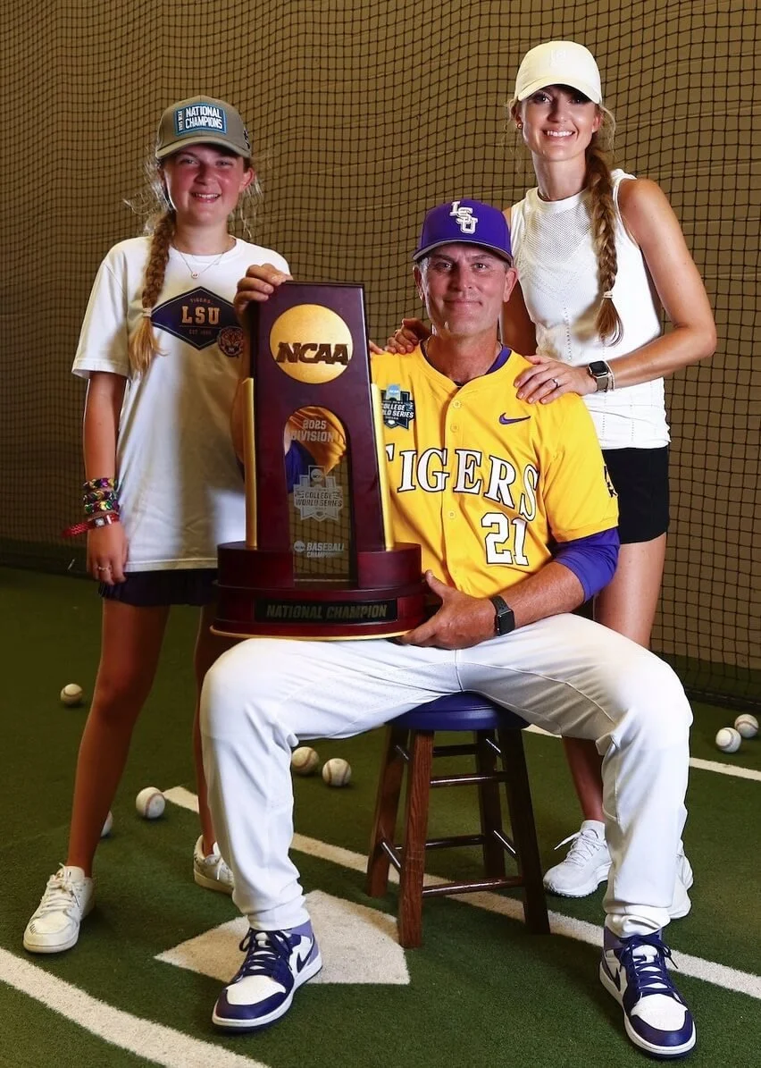 Nate with daughter AJ and wife Brittney (courtesy LSU sports communications)